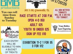Follow BMB Productions on Facebook Ride time 3-5 Exhibitions 5-6:30 Open 7:00 Barrels and Poles You can roll your time from Thursday to Saturday Race as well as Run. Open… Read more »