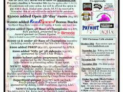 CBT BARREL RACING PRESENTS 19TH ANNUAL CHRISTMAS CA$H BARREL RACE WEEKEND NOVEMBER 24-26, 2023 AMARILLO, TX AMARILLO NATIONAL CENTER ~ 3301 E 10TH AVE $6750 IN ADDED CASH &… Read more »