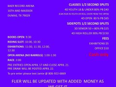 COWBOY CLASSIC SHOWDOWN APRIL 23, 2023 BAER RECORD ARENA 16TH AND MADDOX DUMAS, TX 79029 CLASSES 1/2 SECOND SPLITS 4D YOUTH 18 & UNDER 80% PB $40 (CAN RUN IN… Read more »