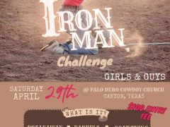 “Good Show” Events Presents IRON MAN Challenge GIRLS & GUYS SATURDAY APRIL 29 @ PALO DURO COWBOY CHURCH CANYON, TX $100 ENTRY FEE WHAT IS IT? BREAKAWAY BARRELS GOAT TYING… Read more »