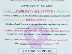 SOUTHERN COLORADO BARREL RACING ASSN – SCBRA APPROVED SOCO EQUINE PRODCUTIONS LLC BUCKLE SERIES APRIL 29 MAY 27 JULY 15 AUG 5 SCHEDULE RIDE TIMES:11:00 – 11:30 AM 11:30 AM… Read more »